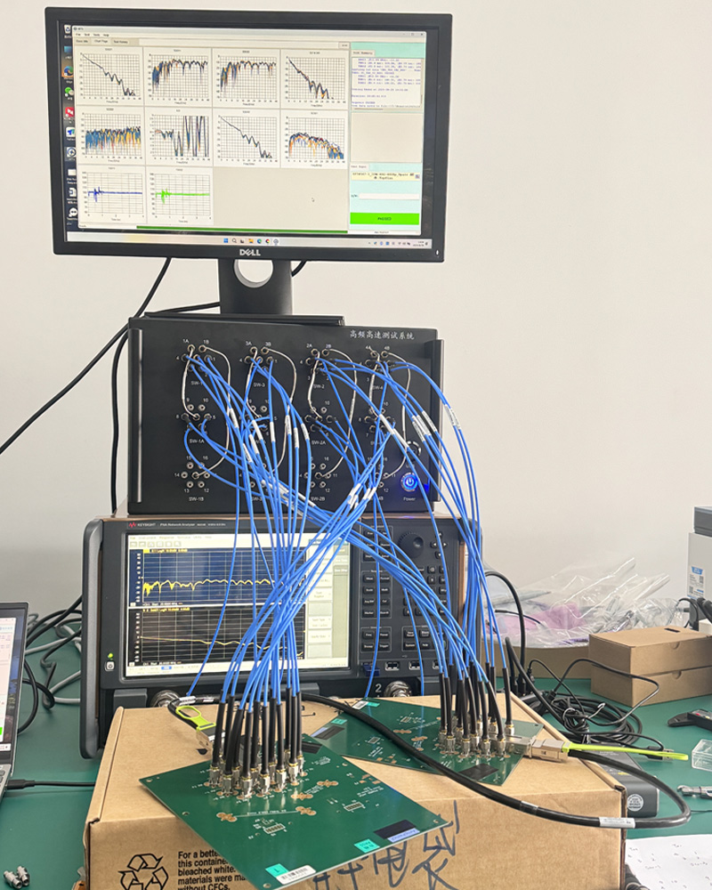 HPMS-72 40GHz 高速線纜高頻測試系統(tǒng),通過HPMS軟件控制矢量網(wǎng)絡(luò)分析儀、96通道高頻開關(guān)矩